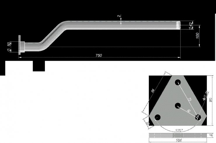 Soporte guardabarros curvado 750 x Ø42 ACCESSOIRES CAMION GUARDABARROS, SOPORTES, CALZOS
