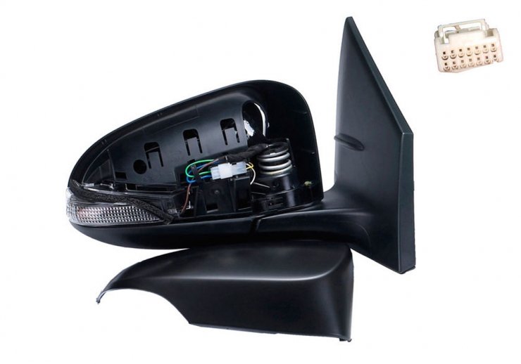 Completo. A pintar del color del vehículo, y cristal convexo. Térmico. Con piloto intermitente. Conector de 7 pines.