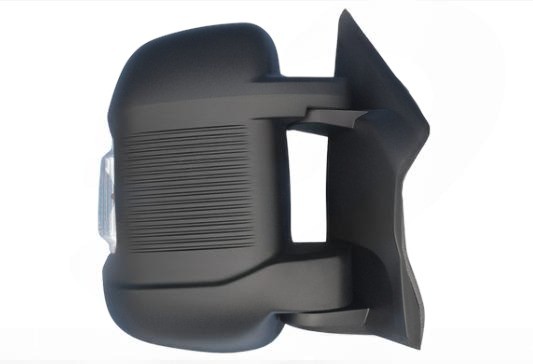Completo, de color negro. Con intermitente 16w. Cristal convexo, calefactado. Superficie graneada. Con antena digital. Abatible eléctricamente. Brazo corto. Para modelos a partir de 11.2023