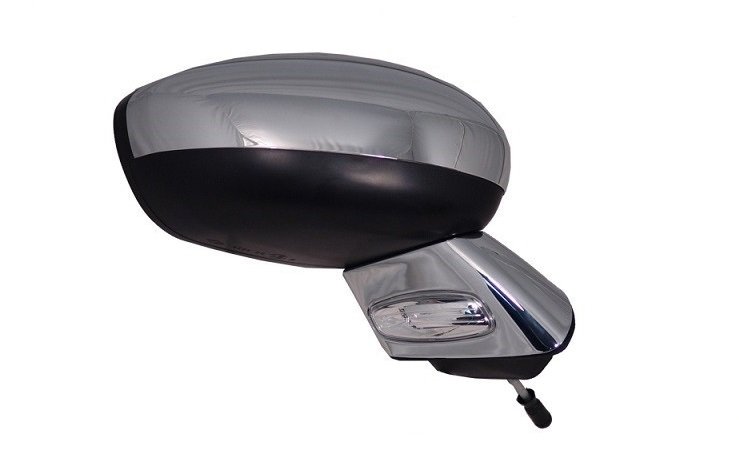 Completo, con carcasa y soporte cromados, intermitente y cristal convexo. Ajuste interior eléctrico, térmico, abatible eléctricamente con sonda de temperatura. Conector 11 pins.