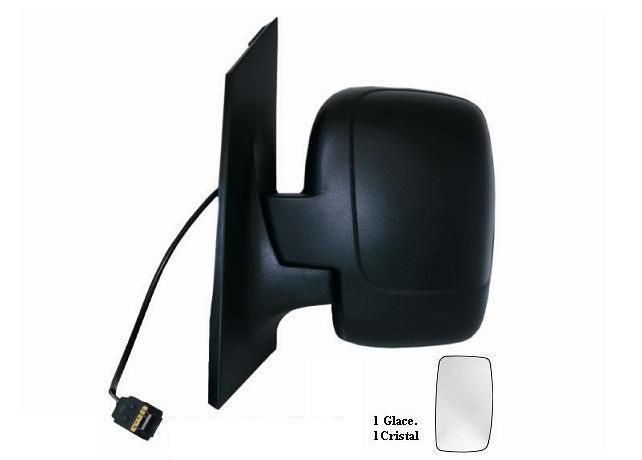 Para retrovisor 1 cristal. Completo, con carcasa negra y cristal convexo. Ajuste interior eléctrico, térmico, abatible eléctricamente. Conector de 7 pines.