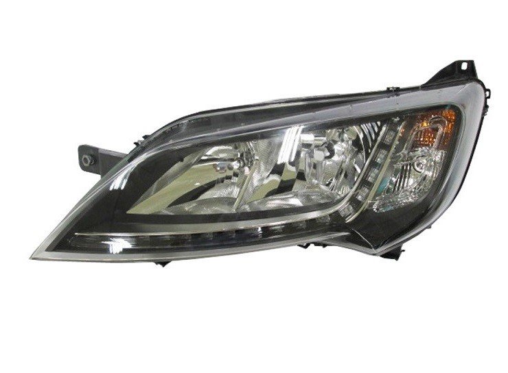 Montaje tipo AL. Para 2 lámparas H7 + luz de día LED. Ajuste interior eléctrico, suministrado sin motor fondo negro.