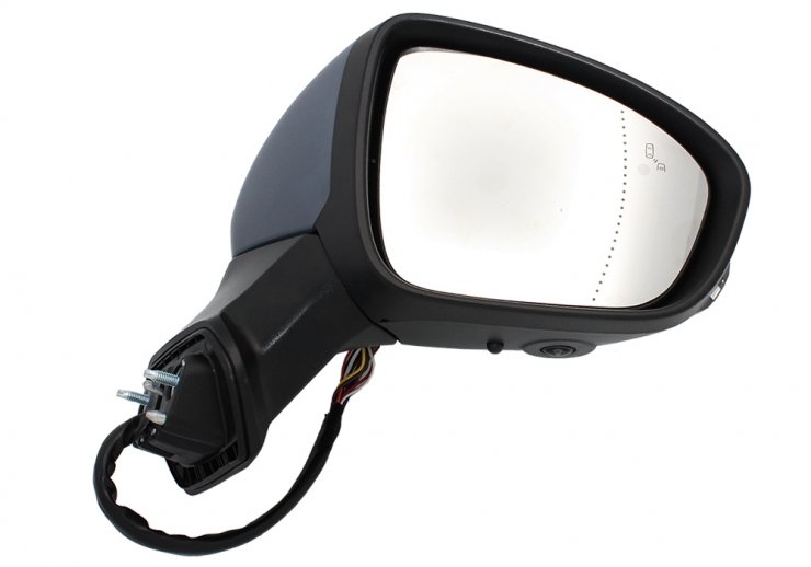 Completo, carcasa a pintar del color del vehículo y cristal asférico (ángulo muerto). Térmico. Abatible eléctricamente. Con piloto intermitente. LED y side assist. Sonda de temperatura. Con cámara. LHD+RHD. Conector de 16 pines.