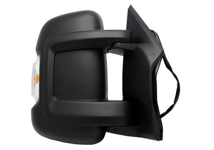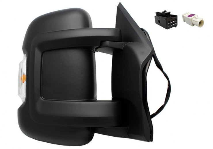 Completo, con carcasa negra, intermitente blanco (16W), antena y cristal convexo (2 cristales). Ajuste interior eléctrico, térmico. Brazo corto. Conector 8 pines.