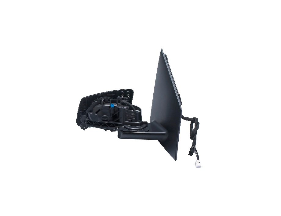 Cuerpo de retrovisor sin carcasa con cristal asférico (ángulo muerto) y piloto de cortesía (iluminación del suelo). Ajuste interior eléctrico, térmico, abatible eléctricamente con memoria y opción (side assist) asistencia cambio de carril. Conector 20 pins.