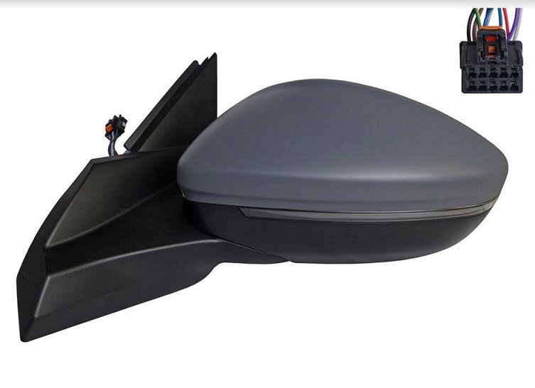 Completo, con carcasa para pintar del color del vehículo, cristal convexo, intermitente led y luz de cortesía (iluminación del suelo). Ajuste interior eléctrico, térmico, abatible eléctricamente con conector 10 pins.