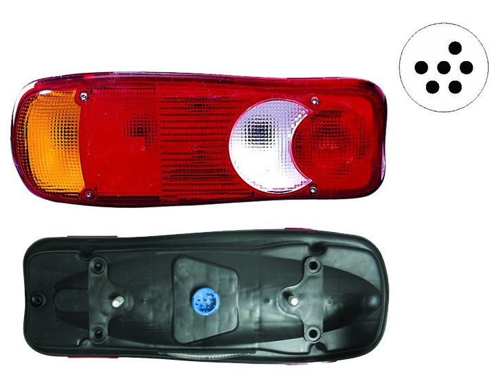 Suministrado con portalámpara. Para 4 lámparas P21W y 2 lámparas R10W. 24 Voltios. Con conector. Distancia bulón: 152mm.