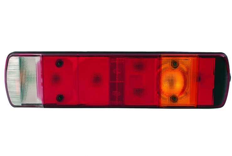 Piloto trasero con luz marcha atras, luz antinieblas trasera y luz de matricula. Dimensiones: 160mm.